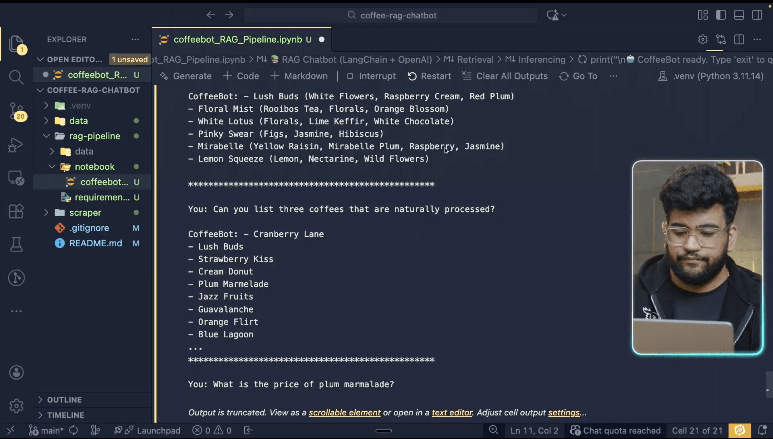 Now that we've got fresh coffee data in JSON format, it’s time to make it queryable. I have used the LangChain LLM application builder framework, which makes it really easy to set up the RAG pipeline.