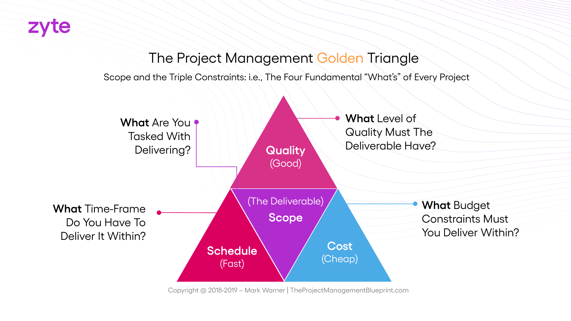 The Golden Triangle of Project Management illustrates the restrictive interplay of three key factors: cost, time, and quality. Achieving a simultaneously cheap, fast, and high-quality project is conceptually impossible because each dimension competes for limited resources.