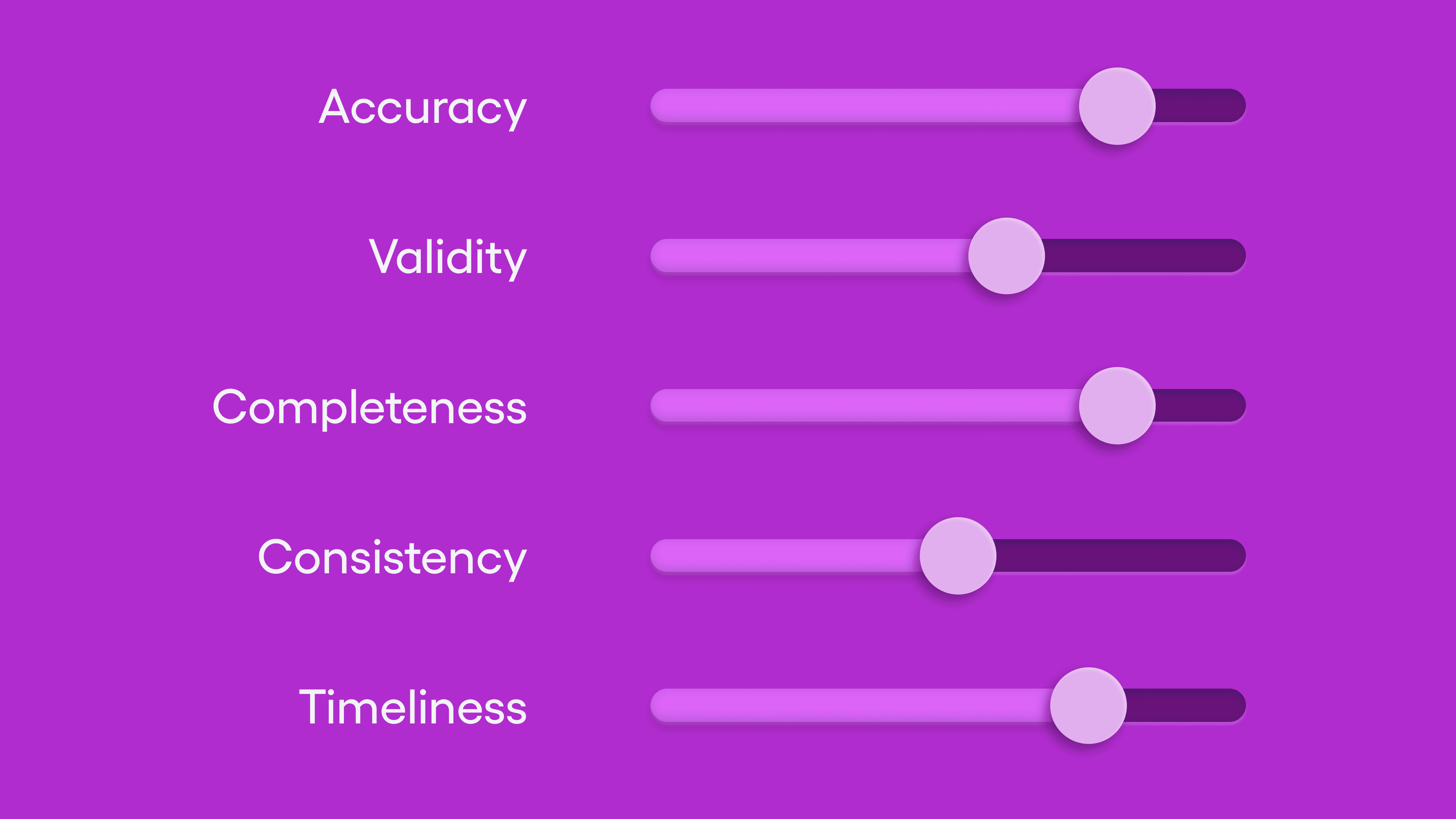 Because each of these dimensions may be more or less critical to you, Artur says you can define your project’s “data quality” by thinking of the criticality of each dimension as though on a sliding scale.