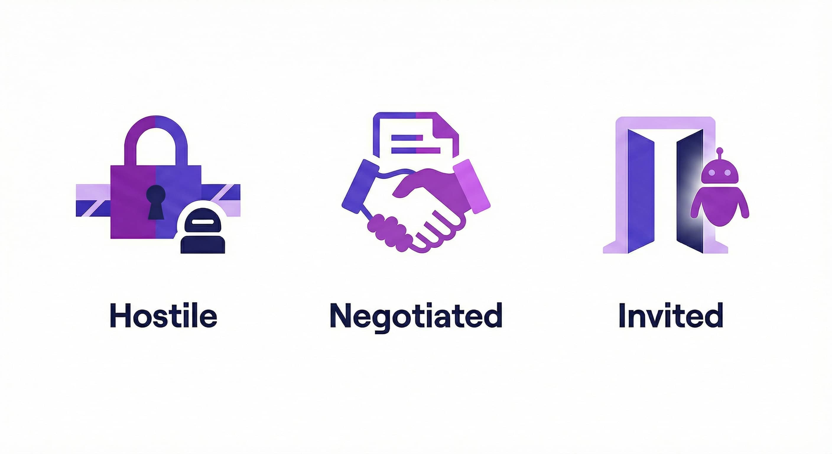 Intention becomes a bargaining chip. Agent utility, not just legitimacy, matters. A shopping agent bringing qualified buyers is treated differently from a training crawler. Websites evaluate whether an agent's purpose aligns with their business model and data strategy. This shifts the conversation from "can you access?" to "should you access, and on what basis?"