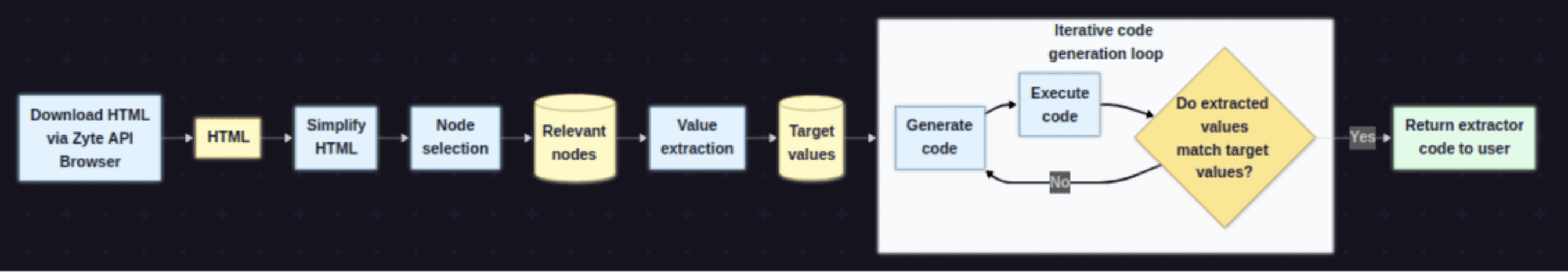 At Zyte, we've been tackling these challenges head-on. In late 2024, we started by creating our own "mini-agent" to automatically write data extraction code. The workflow went like this: