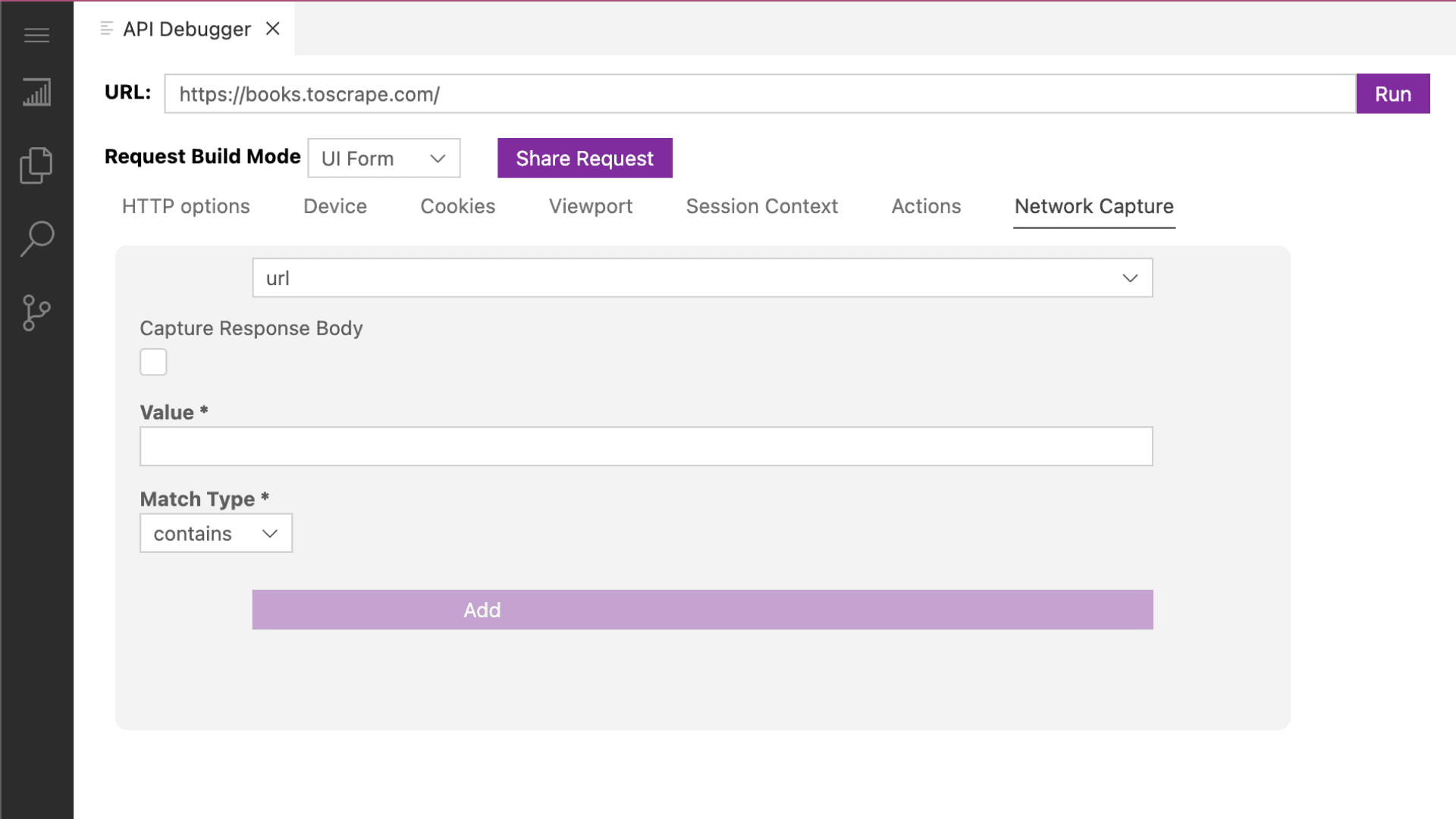Network intercept options in Zyte API's debugger