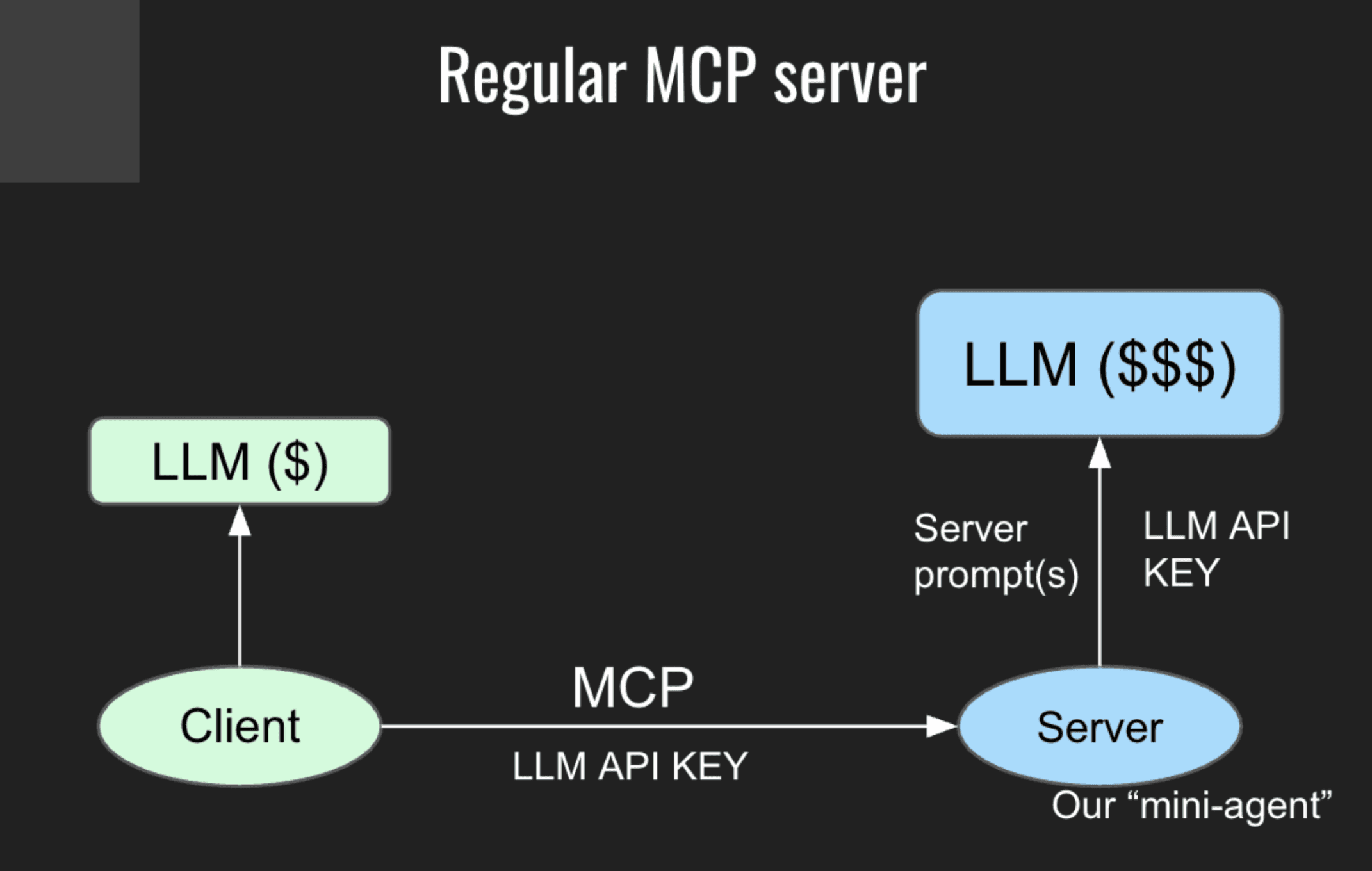 The idea is simple but powerful. Previously, our server was making its own (expensive) calls to an LLM provider like OpenAI.